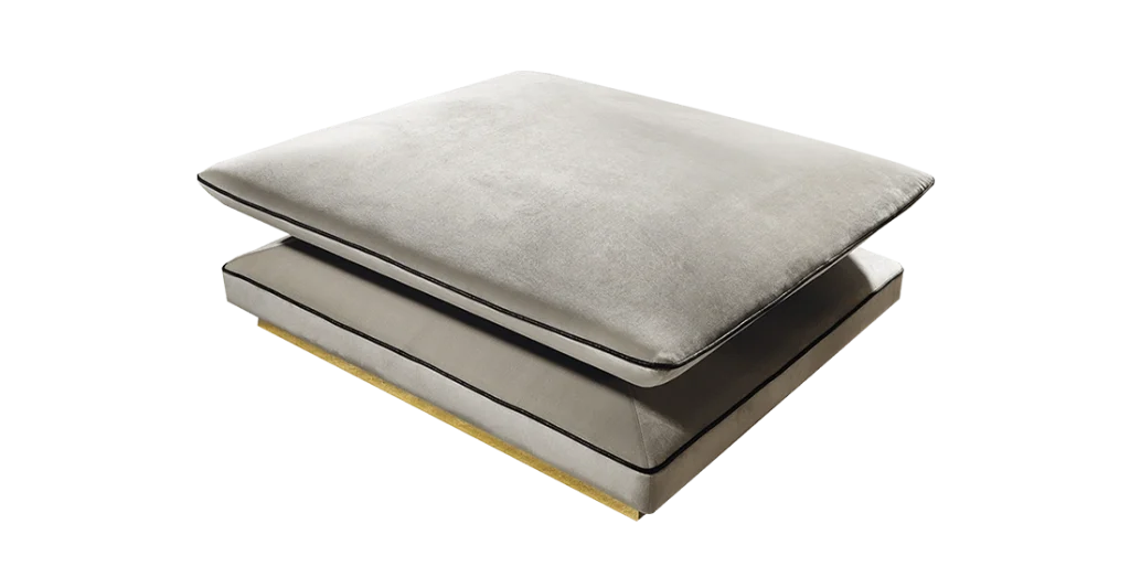 Ugaoni puf Allure delikatno zaokružuje enterijer svojim luksuznim detaljima. Njegova bogata tekstura i precizno oblikovana silueta donose jasnoću linije, dok spoj toplih tonova i diskretnih metalnih elemenata pruža osećaj ugode i prestiža koji se uklapa kako u minimalistički, tako i u raskošniji ambijent.